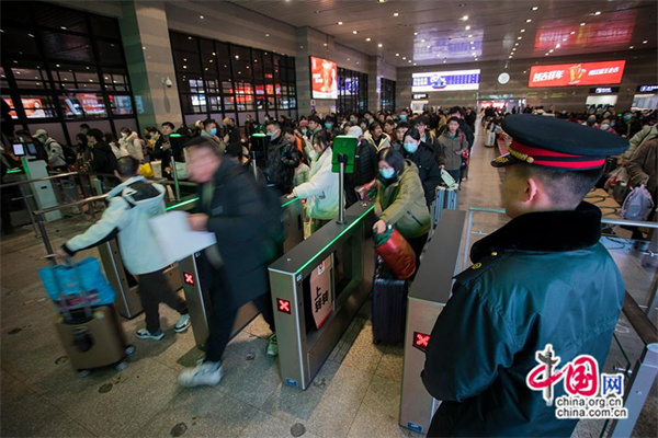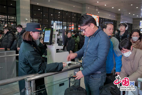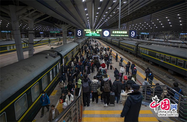 乘坐K4159次列車(chē)的乘客檢票進(jìn)站。中國網(wǎng)記者 馬曠/攝