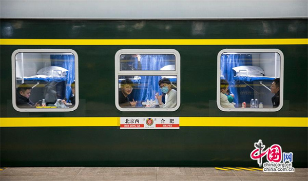 由北京西開(kāi)往合肥的K4159次列車(chē)。中國網(wǎng)記者 馬曠/攝